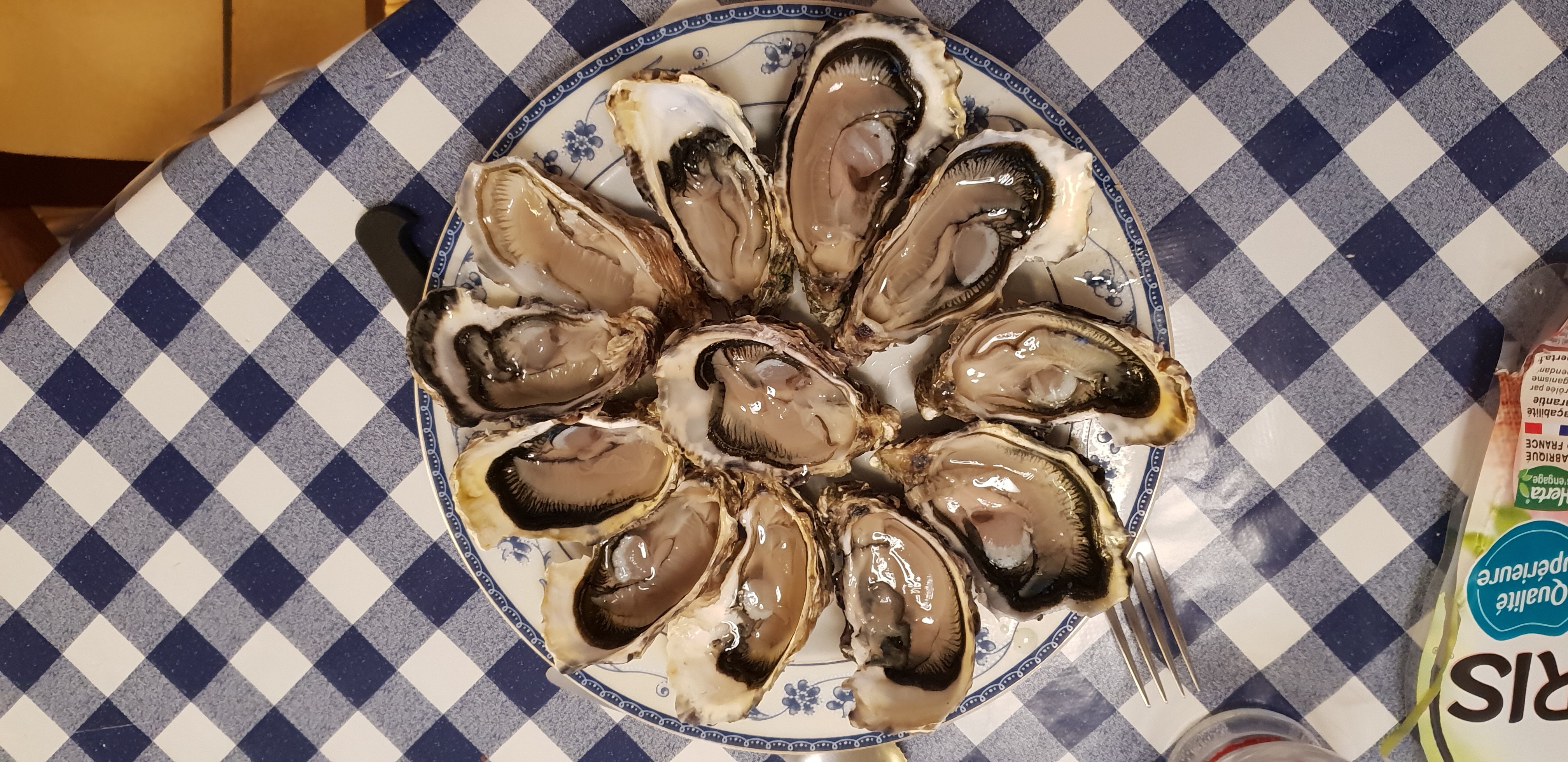 Comme toujours c'était top ! aujourdhui pour nous 2 c'était 4 douzaines d'huîtres !..toutes prêtes joliment installées sur leur plateau sur lit de glace pilée. Plateau si bien réalisé que pas une goutte à coté pdt le trajet ..en.Hummer juqua lawt So sous..bienalu.....lec